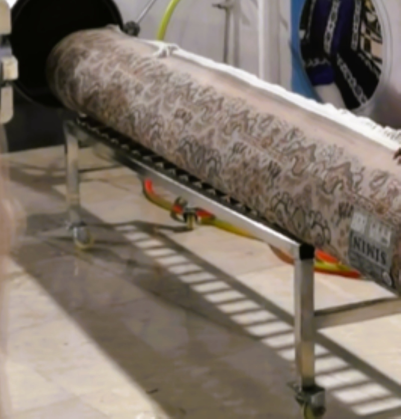 4. Halılar kuruduktan sonra, pille çalışan otomatik halı taşıma ve asma arabasının silindirleri kullanılarak halı kolayca sarılabilir.