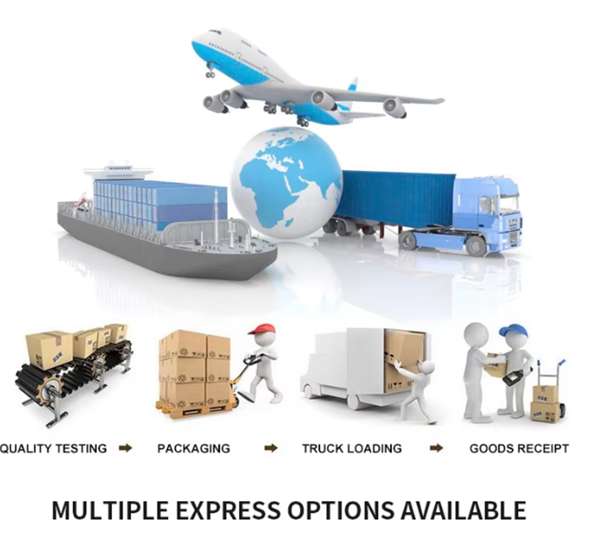 Deniz, hava ve kara taşımacılığı dahil olmak üzere çeşitli nakliye seçenekleri.